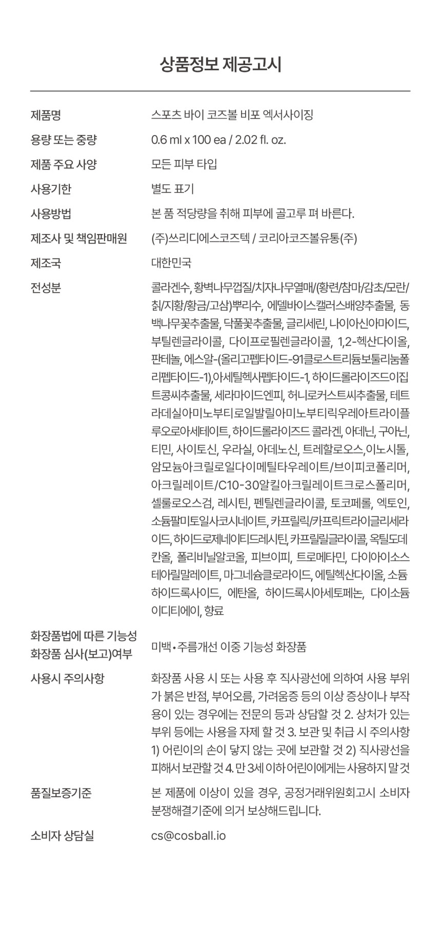 Home > 생활용품/숯제품 > 기타 화장품 > 스포츠 바이 코즈볼 비포 엑서사이징 0.6ml x100알