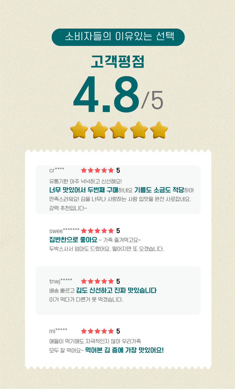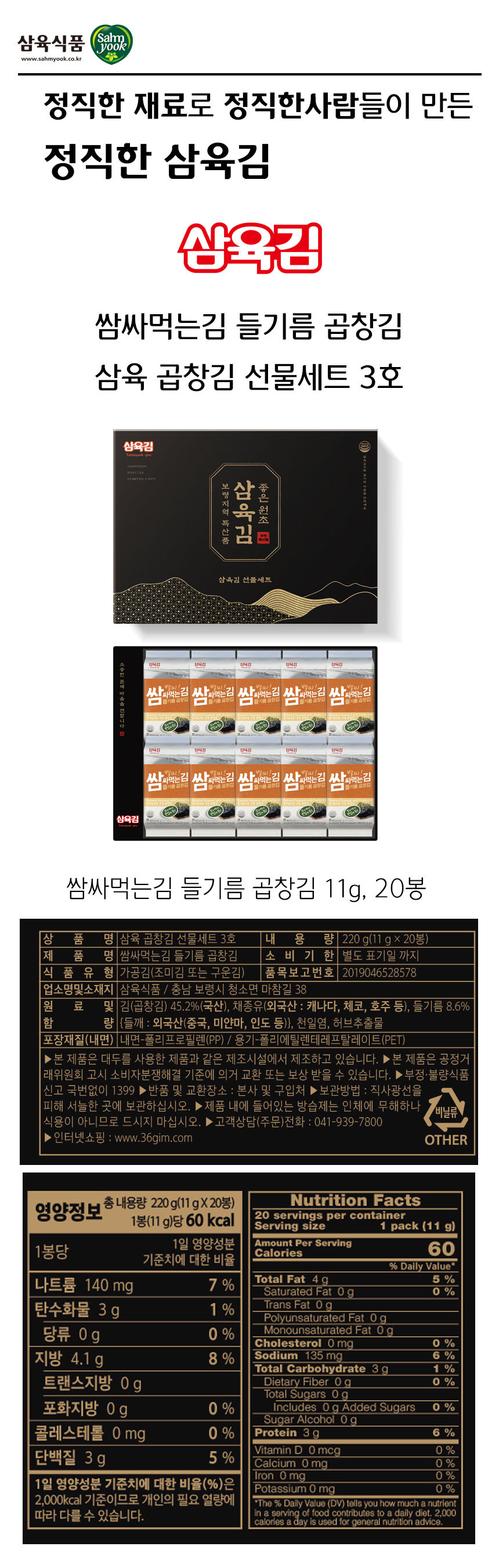 제품명 쌈싸먹는김 들기름 곱창김 3호 선물세트 (11g x 20봉)